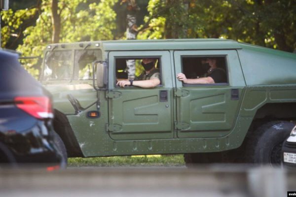 Samedi 8 août – Le dispositif policier à Minsk, déjà préalablement renforcé, s’est vu affermi par l’arrivée d’unités de l’armée, notamment de nombreux véhicules blindés. (Source : tut.by)