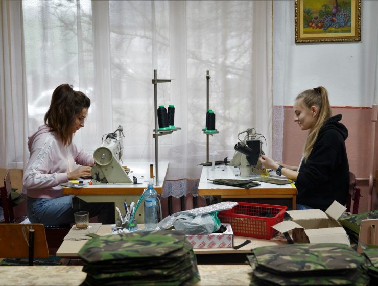 Tania, Lioudmyla et d’autres volontaires confectionnent des gilets pare-balles dans un petit atelier quelque part en Transcarpatie. Une illustration frappante de la levée en masse de la société ukrainienne contre…