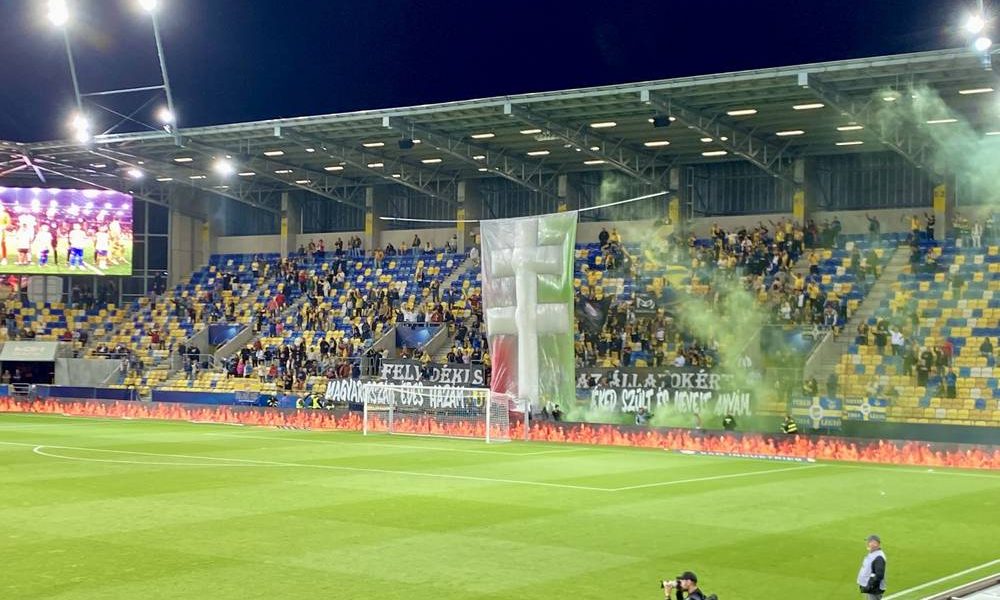 « Vous ne serez pas déçu, là-bas ce n’est pas la Slovaquie, c’est la Hongrie ». Depuis notre arrivée en ville cette phrase prononcée par notre aubergiste de Bratislava résonne dans notre esprit. Notre perception est schizophrène, nous sommes certains d’avoir passé la frontière, nos billets de train nous indiquent un trajet entre deux villes Slovaque, et puis mince, on paye en euros ! Notre vision semble houblonnée face à tant d’incohérence. Au début du match, un chanteur hongrois reprend la chanson « Nélküled » (sans toi), sort d’hymne non-officiel depuis peu pour les Magyars de Trianon, ces Hongrois qui ont été forcés de vivre hors de Hongrie après la redéfinition des frontières en 1920.