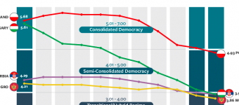 Dans son rapport annuel, Freedom House fait le constat d’« une rupture démocratique dramatique en Europe centrale dans les Balkans et en Eurasie ». La Hongrie, la Serbie et le Monténégro ne sont même plus considérés comme des démocraties.