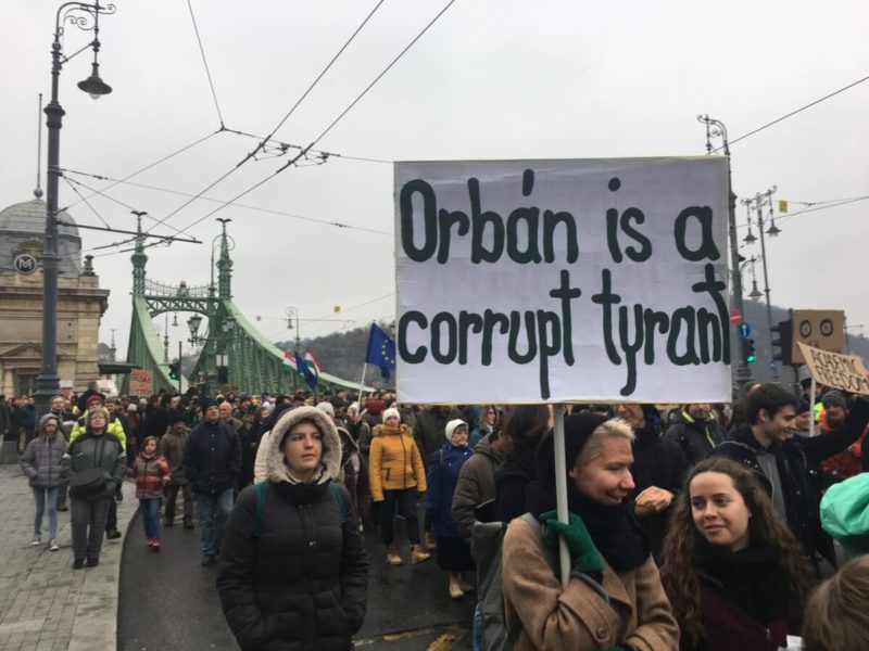 Lors des manifestations de samedi, les intervenants de l’Académie hongroise des sciences, de la CEU, de l’Universite Lóránd Eötvös (ELTE) et de Corvinus ont tous insisté sur la nécessaire solidarité et l’alliance entre les gens et les institutions. Solidarité avec les étudiants et les universitaires, mais également avec les réfugiés et les travailleurs. Ce dernier point est particulièrement pertinent dans le contexte de la « loi sur le travail forcé » proposée par le Fidesz, qui permettrait aux employeurs de contrôler davantage les heures supplémentaires. « Vivre dans une bulle est pratique, mais des bulles éclatent. Au lieu de stratégies d’évitement individuelles, construisons des alliances et organisons-nous », a lancé Éva Bognár, employée de CEU. Imre Szijártó, étudiant et l’un des organisateurs de la manifestation, a évoqué le même problème : « Ce mouvement concerne beaucoup plus que la CEU ou même l’éducation. Notre lutte fait partie de la lutte pour l’âme de la Hongrie. » a rappelé M. Szijártó. « Lorsque l’attaque contre la CEU a commencé en 2017, la société hongroise s’est solidarisée avec la communauté de la CEU. Il est maintenant temps que la communauté de la CEU se solidarise avec la société hongroise. »