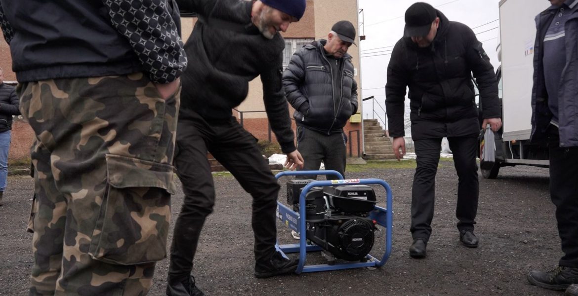 Ce matin-là, sur le parvis de la mairie, le jeune maire du district de Korolevo, Anton Pavlovytch, attend l’arrivée du convoi humanitaire parti de Toulon deux jours plus tôt. Très vite, une chaîne humaine d’une quinzaine de personnes s’attèle à décharger les 35 m3 de vêtements chauds, de nourriture et de matériel médical, béquilles et fauteuils roulants qui partiront sur la ligne de front. Mais le représentant de la ville lorgne surtout sur les onze générateurs thermiques au fond des véhicules qui lui permettront de relancer ses écoles. « Depuis la mi-janvier, à Korolevo, on passe entre 14 et 16 heures par jour sans électricité », décrit le maire.